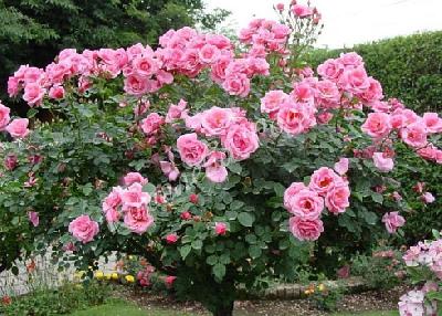 Цветение продолжается весь сезон. Цветки нежно розового цвета махровые с ароматом шиповника, старинного типа, появляются в кистях. Роза хорошо держит цветок. Листва красивая, крупная, устойчивая к заболеваниям.