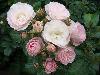 Гибрид rosa moschata. Прямостоячий непрерывноцветущий шраб. Высота 120-150 см. Густомахровые кремовые цветки с нежно-розовым дыханием появляются в крупных сферических кистях на крепких цветоносах. Каждая кисть выглядит как настояшая цветочная аранжировка. Очень сильный и морозостойкий сорт. (rosebook.ru)