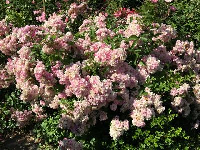 Пышные шапки цветов, за которыми почти не видно листвы, долгое цветение, исключительное здоровье и переливы цвета. Красота! Ну как можно пройти мимо?) Это Сухумка. Полуплетистый гибрид мультифлоры, исключительно обильный, неприхотливый, морозоустойчивый (в 5-й зоне ничем никогда на зиму не укрывается). Первое цветение в начале июня, продолжается в среднем в течение 4 недель, но может цвести и до 6-ти недель, если стоит умеренная погода (нет изнуряющей жары и ливней). Первое цветение исключительно обильное, обливное, за шапками цветов не видно листьев. Цветёт роза по всей длине ветвей. Сначала цветы нежно-розовые, потом светлеют и ,старея, становятся почти белыми. После первого цветения происходит нарастание новых ветвей, и в конце лета-начале осени роза зацветает повторно, но слабо, отдельными кистями на концах новых веток. После цветения можно произвести обрезку (вырезать старые ветви, а новые укоротить на нужную длину), а можно оставить эту процедуру до весны.(Rosebook)
