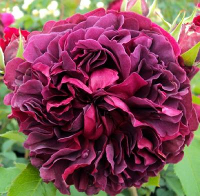 Великолепный сорт с восхитительными цветками яркого бархатно-красного цвета, со временем переходящего в столь же насыщенный пурпурный. В начале цветки глубоко чашевидные, затем открываются и становятся более плоскими и квартированными. Куст прямостоячий, на каждом побеге много цветов. Насыщенный аромат с нотками фиалок. Превосходная устойчивость к заболеваниям.