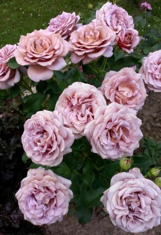 Цветы классической формы с уникальным цветом кофе с молоком и лавандовым оттенком. Куст компактный округлый с зелёной полу-глянцевой листвой. Цветение почти непрерывное до осени.