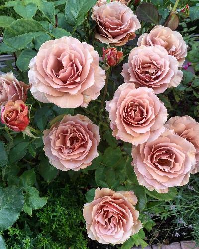 Цветы чашевидной формы кофейного цвета с лёгким ароматом,одиночные и в небольших соцветиях.Листва устойчивая к болезням.