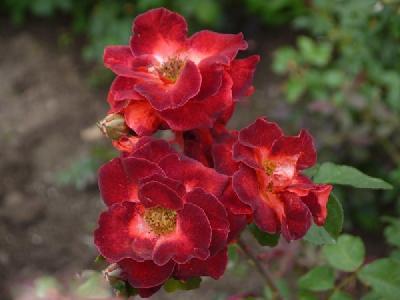 Великолепная флорибунда, одна из множества, выведенных в Новой Зеландии. Совершенно необычная полумахровая роза. Её цветы глубокого красно-коричневого цвета в крапинку с тёмно-красной окантовкой и пурпурно-оранжевыми тонами, с яркими золотыми тычинками и сливочной серединкой. Цветы появляются по одному или в соцветиях до 9 штук на коротких пурпурных стеблях. Здоровая мелкая полуглянцевая листва вначале имеет красный цвет, который переходит в дальнейшем в тёмно-зелёный. Выведена Нолой Симпсон. Роза имеет лёгкий аромат. Высота растения 75 см. Описание фирмы Style roses,UK.