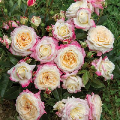 Цветки махровые , старинной чашевидной формы, кремовые с розовой каймой, в соцветиях. Аромат сильный, сладкий. Цветение повторное в течение сезона. Листва тёмно-зелёная, полуглянцевая, устойчивая к болезням. Куст компактный, хорошо разветвлённый. Зона 6 (до -18ºС).