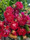 Бутоны красно-жёлтые, двухцветные. Цветки необычной формы, очень похожей на кувшинку, красновато-фиолетовые с кремовыми оттенками в нижней части лепестка, в соцветиях. Цветение почти непрерывное. Листва густая, глянцевая, устойчивая к болезням. Куст пряморослый.