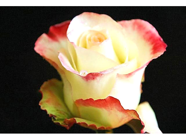 Роза нежно-желто- красная, с красными краями, махровая, диаметр в роспуске 10 см, высота куста до 130 см, ширина 70 см. Используется для срезки и озеленения.