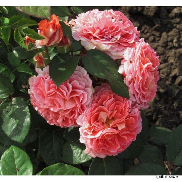 Цветки необычной окраски для роз серии Generosa. Они оранжево-розовые с белой оборотной стороной, густомахровые, квартированные, старинной формы, собраны в соцветия. Умеренный аромат цитрусовых. Листва глянцевая, высокоустойчивая к заболеваниям. Цветение очень обильное, повторное.(Rosebook)