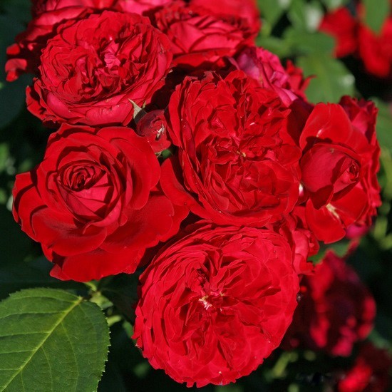 Цветки большие, махровые, красные, бархатистые. Цветение очень обильное, длительное. Кусты вертикальные, густые. Золотая медаль.Больше информации на www.podvorje.ru