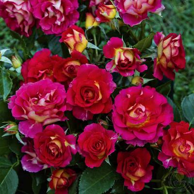 Бутоны красно-жёлтые, двухцветные. Цветки необычной формы, очень похожей на кувшинку, красновато-фиолетовые с кремовыми оттенками в нижней части лепестка, в соцветиях. Цветение почти непрерывное. Листва густая, глянцевая, устойчивая к болезням. Куст пряморослый.