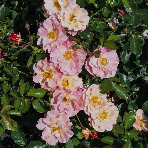 Цветущие кусты сильно привлекают пчёл и бабочек. Цветки диаметром 6-7 см, полумахровые (9-16 лепестков), розовые с лиловыми бликами и центром из жёлтых тычинок. Листва глянцевая, тёмно-зелёная, кожистая. Цветение повторное. Осенью образуются маленькие декоративные плоды. Куст компактный, округлый, высотой 40-50 см. Идеально подходит для выращивания в горшках. Зона 6 (до -18ºС).