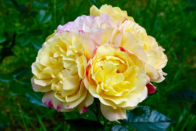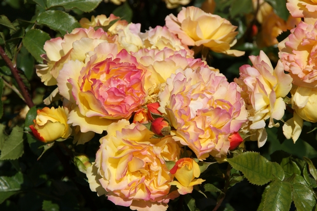 биколор, нежно-желтый, красные внешние лепестки