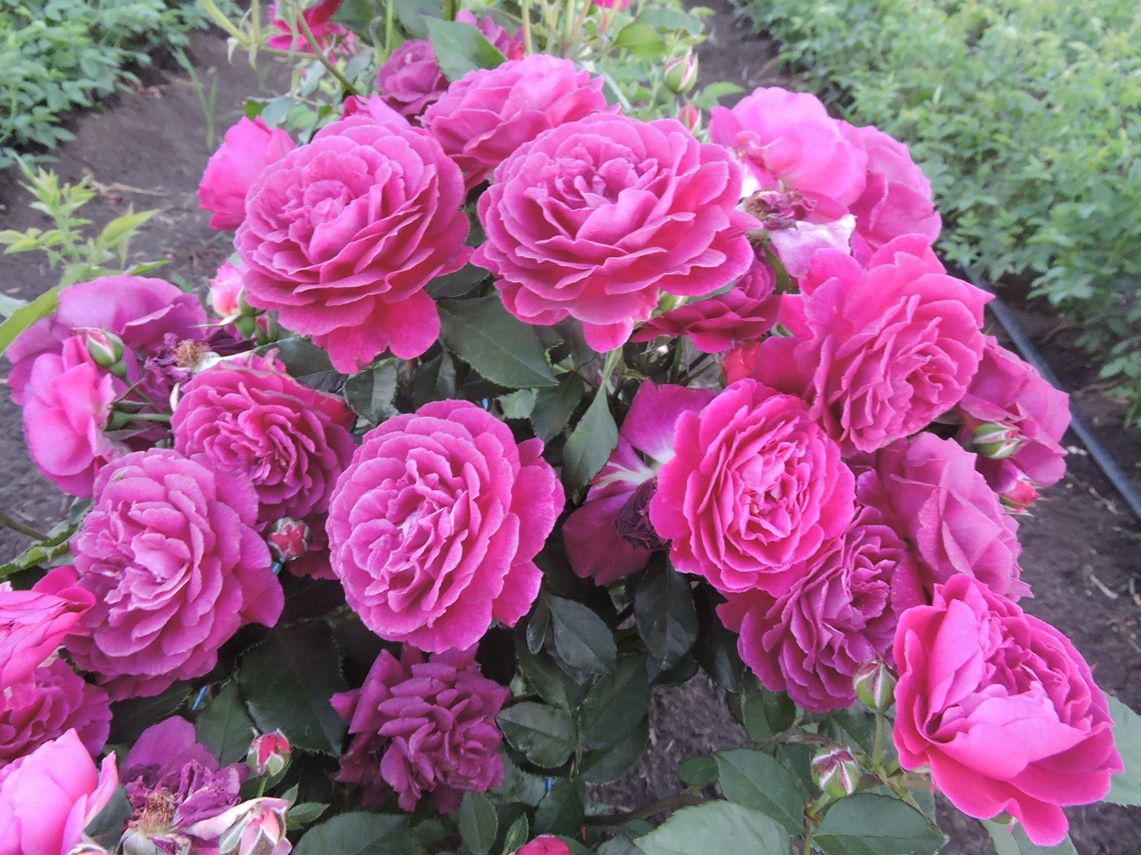 Грандифлора. Цветки густомахровые , шаровидной старинной формы, розово-фуксиновые, в больших соцветиях, не выгорают на солнце. Аромат лёгкий. Цветение повторное, в течение сезона. Листва полуглянцевая, тёмно-зелёная, из 5-7 листочков, очень устойчивая к заболеваниям. Куст пряморослый. Идеально подходит как для посадки в саду, так и для выращивания в горшках.Больше информации на www.podvorje.ru |