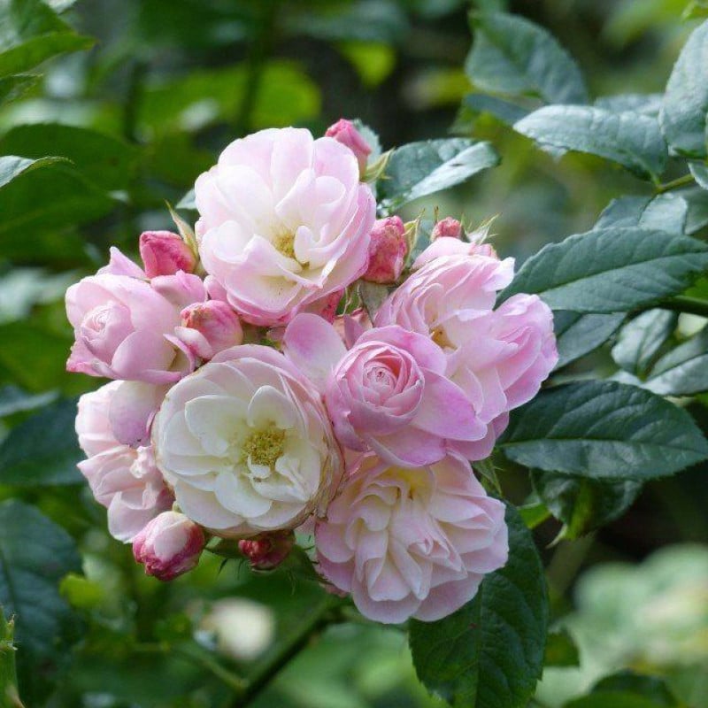 Цветки помпонные, густомахровые, кремово-нежно-розовые 4-5 см, появляются в больших соцветиях.Куст прямостоячий, густооблиственный. Аромат фруктовый ,насыщенный,более сильный во второй половине дня.Листва среднего размера. плотная, глянцевая, тёмно-зелёная. Цветение обильное, продолжительное , повторное. Сорт устойчив в чёрной пятнистости и мучнистой росе. |