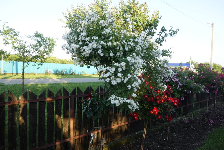 Пышные шапки цветов, за которыми почти не видно листвы, долгое цветение, исключительное здоровье и переливы цвета. Красота! Ну как можно пройти мимо?) Это Сухумка. Полуплетистый гибрид мультифлоры, исключительно обильный, неприхотливый, морозоустойчивый (в 5-й зоне ничем никогда на зиму не укрывается). Первое цветение в начале июня, продолжается в среднем в течение 4 недель, но может цвести и до 6-ти недель, если стоит умеренная погода (нет изнуряющей жары и ливней). Первое цветение исключительно обильное, обливное, за шапками цветов не видно листьев. Цветёт роза по всей длине ветвей. Сначала цветы нежно-розовые, потом светлеют и ,старея, становятся почти белыми. После первого цветения происходит нарастание новых ветвей, и в конце лета-начале осени роза зацветает повторно, но слабо, отдельными кистями на концах новых веток. После цветения можно произвести обрезку (вырезать старые ветви, а новые укоротить на нужную длину), а можно оставить эту процедуру до весны.(Rosebook) |