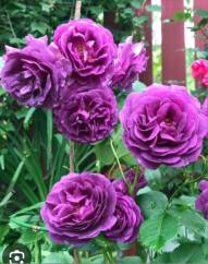 Цветки махровые , в соцветиях по 5-7. Лепестки бархатистые тёмно-фиолетовые, контрастируют с ярко-фиолетовой с белыми оттенками оборотной стороной. Аромат сильный, розы и красных фруктов. Цветение повторное, до заморозков. Листва глянцевая, очень устойчивая к болезням. Куст энергично растущий, с сильными ветвями. Рекомендуется для массовых и одиночных посадок, срезки.Больше информации на www.podvorje.ru |